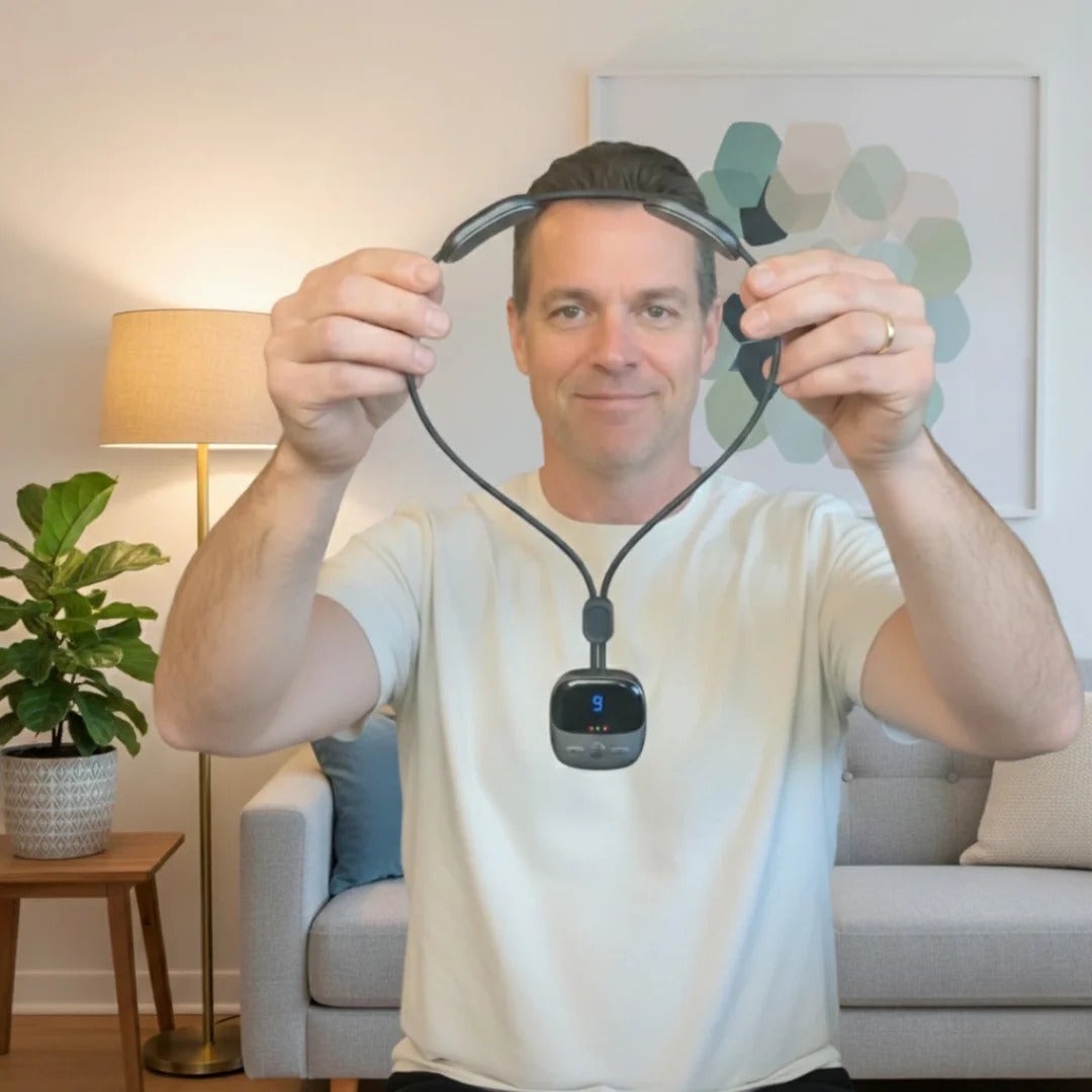 Og det er akkurat derfor Dr. Jon Kåre Tollefsen har utviklet NakkeLindrer-Pluss – et helseapparat som støtter nakken og stimulerer nakkemusklene dine med NMES-teknologi, varmeterapi og massasjeterapi, slik at din egen kropp får sendt næringsrik blodstrøm til nakkemusklene og gjenoppretter balansen helt selv!