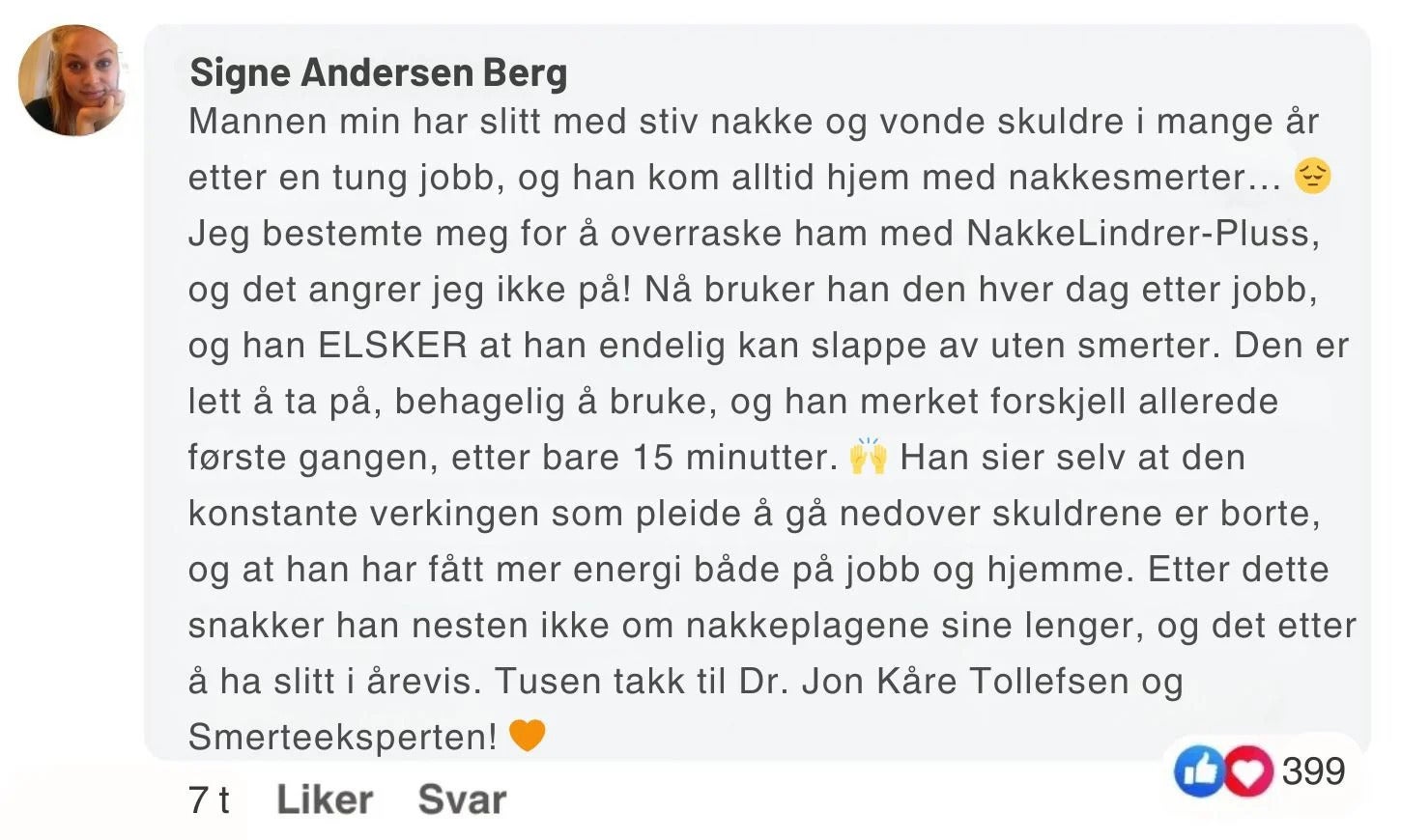 Jeg takker fortsatt Gud hver eneste dag for at jeg oppdaget NakkeLindrer-Pluss!